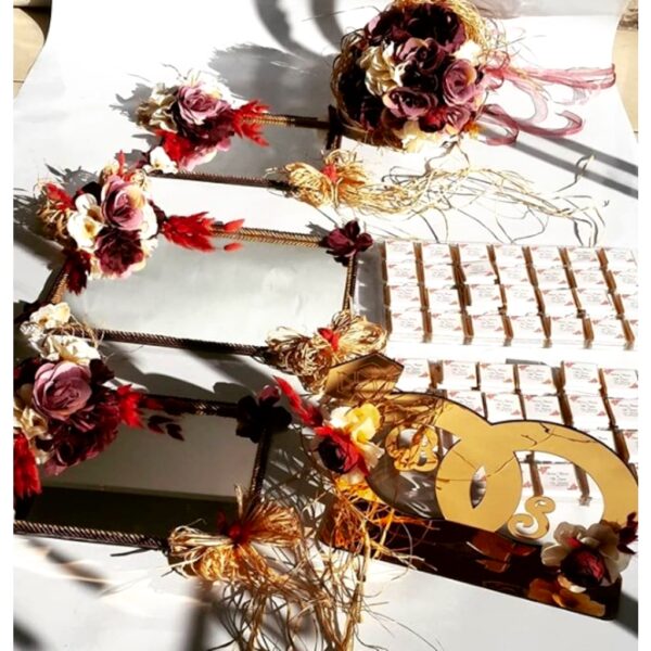 Söz, Nişan, Kına, Düğünleriniz için b u setimiz; 1 adet alyans modeli isimlik, 1 adet Gelin Çiçeği 3 adet sunumluk
